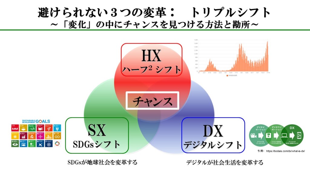 (それは、HXと記していますが、『GX:ゴールデン・トランスフォーメーション』と呼んでもいいかもしれません。「SDG」とは、SX・DX・GXのs新結合と表せます)
