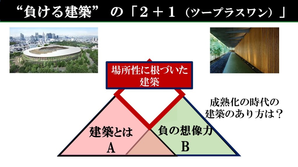後方で、本書「負ける建築」を「2+1」で表したいと思います。