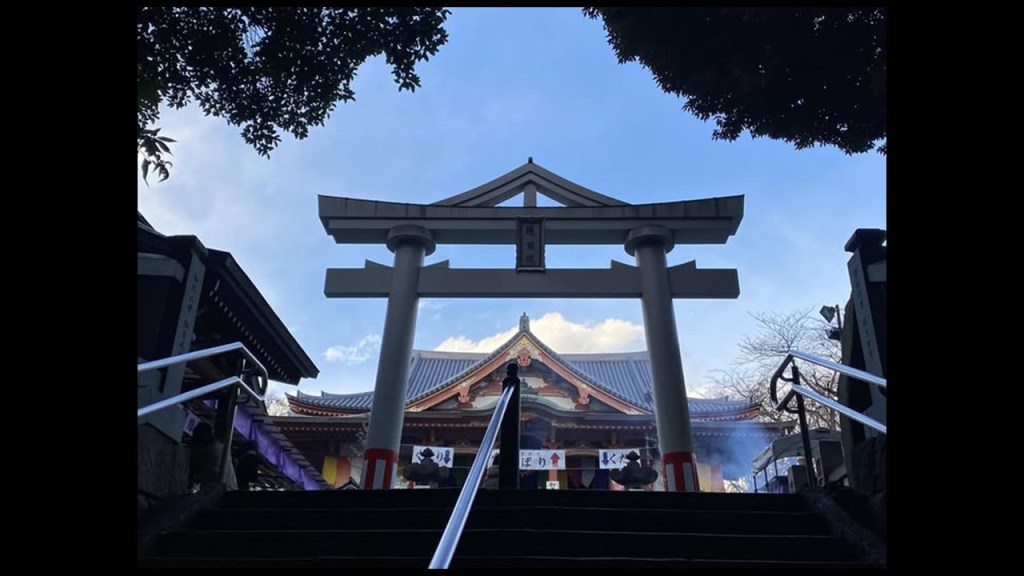 (東京・江戸には、白、黒、赤、青、黄の5色の不動明王があり、その中の黒がこの目黒不動です)