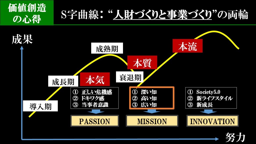 ・本気(パッション)→本質(ミッション)→本流(イノベーション)