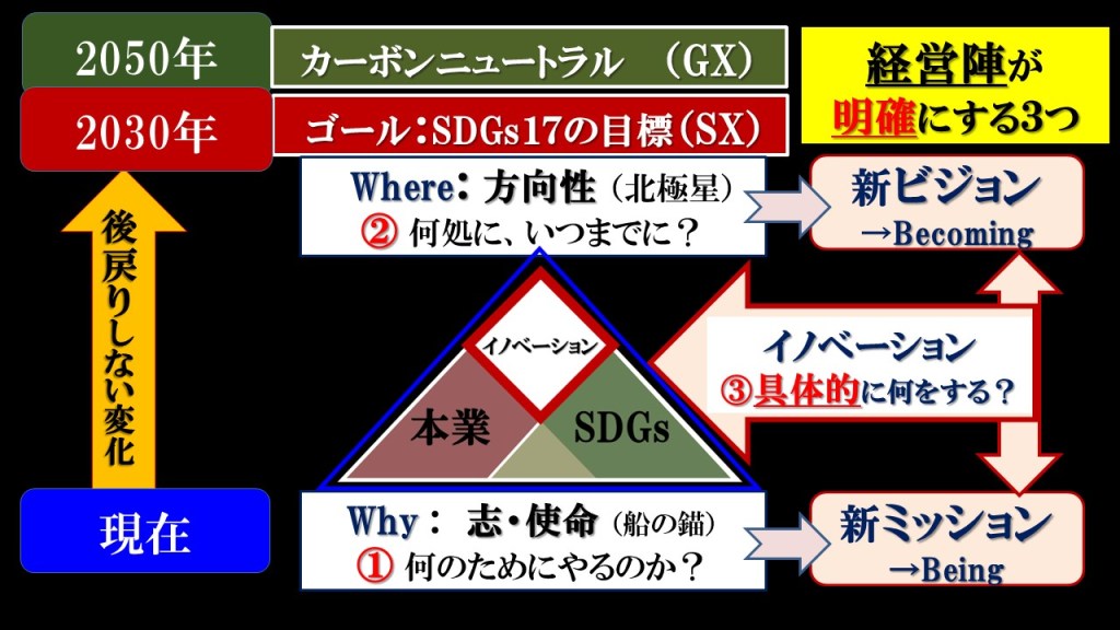 企業、地方自治体の「ビジョン」(何を目指すのか?何を変えたいのか?なりたい姿は?)」につながって成長経営に直結します。