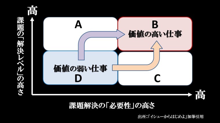 下図の価値が高い「B箱(領域)」は「特別・別格な領域」であり、そこを突き詰めて考え、構想・実装することで、持続的な対価を得ることができるようになります。