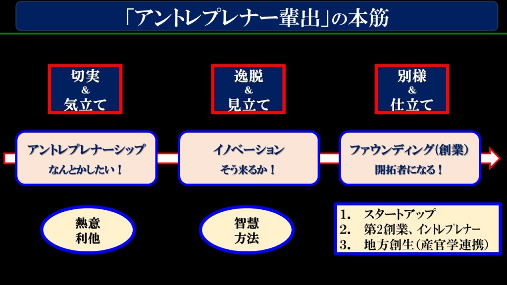 上図の「実践・アントレプレナー体系」をご覧ください。